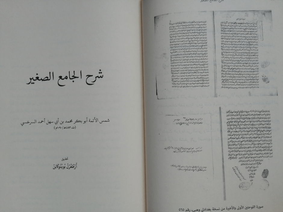 Title: Sharḥ al-Jāmi῾ al-Ṣaghῑr Author: Imām Abu Bakr Muḥammad ibn Abi Sahl Aḥmad al-Sarakhsi (b. 400 AH/1009 CE) Editor: Dr. Ertugrul Boynukalin Genre: Ḥanafi fiqh Publisher: Türkiye Diyanet Vakfı Yayinlari (Turkey) & Dār al-Rayāḥῑn (Beirut/Amman) Year of publication: 1443/2021 (1st and 2nd editions) Number of volumes: 2
