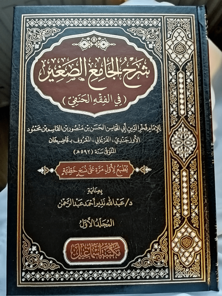 Title: Sharḥ al-Jāmi῾ al-Ṣaghῑr Author: Imām Fakhr al-Dῑn al-Ḥasan ibn Manṣūr al-Auzjandi al-Farghāni (d. 592 AH/1196 CE) – known as Qāḍῑkhān Editor: Dr. ῾Abd Allāh Nadhῑr Aḥmad Genre: Ḥanafi fiqh Publisher: Ismaeel Books (United Kingdom) Year of publication: 1443/2022 (1st edition) Number of volumes: 3